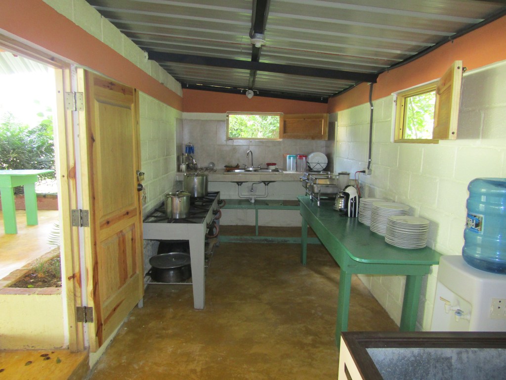 Habilitado en un segundo nivel con 4 amplias habitaciones, cada una con su baño y servicio de agua caliente. Cada dormitorio con una cama de dos plazas y dos camarotes. 6 personas por habitación. También un perchero para zapatos, bultos y colgar prendas de vestir. La cabaña tiene una sala central compartida. Con una nevera, un televisor y butacas. Cuando nos visitan grupos que superan las camas habilitadas usamos la sala central con colchones en el suelo. Así puede recibirse un grupo de hasta 45 personas. Dispone de una cocina equipada con estufa industrial, frízer, nevera, bebedero, ollas, platos y cubiertos. También licuadora, tostadora, entre otros.